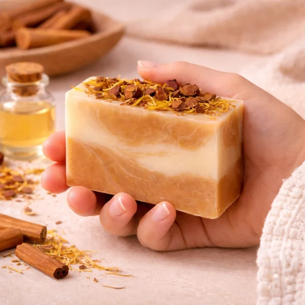 The rich, woody aroma of sandalwood provides a calming and grounding experience. Known for its soothing and therapeutic properties, this sandalwood soap enhances your bathing ritual with a touch of relaxation and luxury, making every use feel like a spa experience at home.